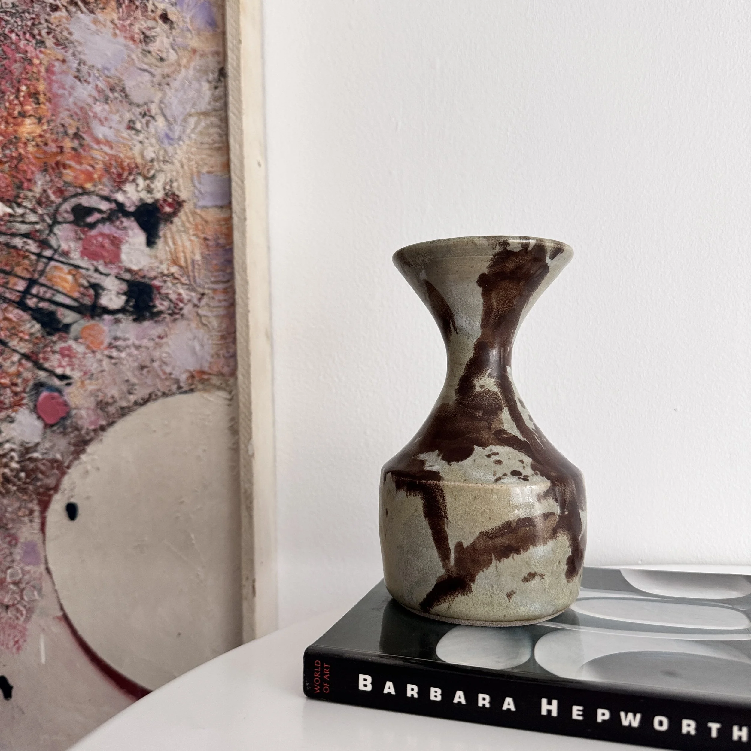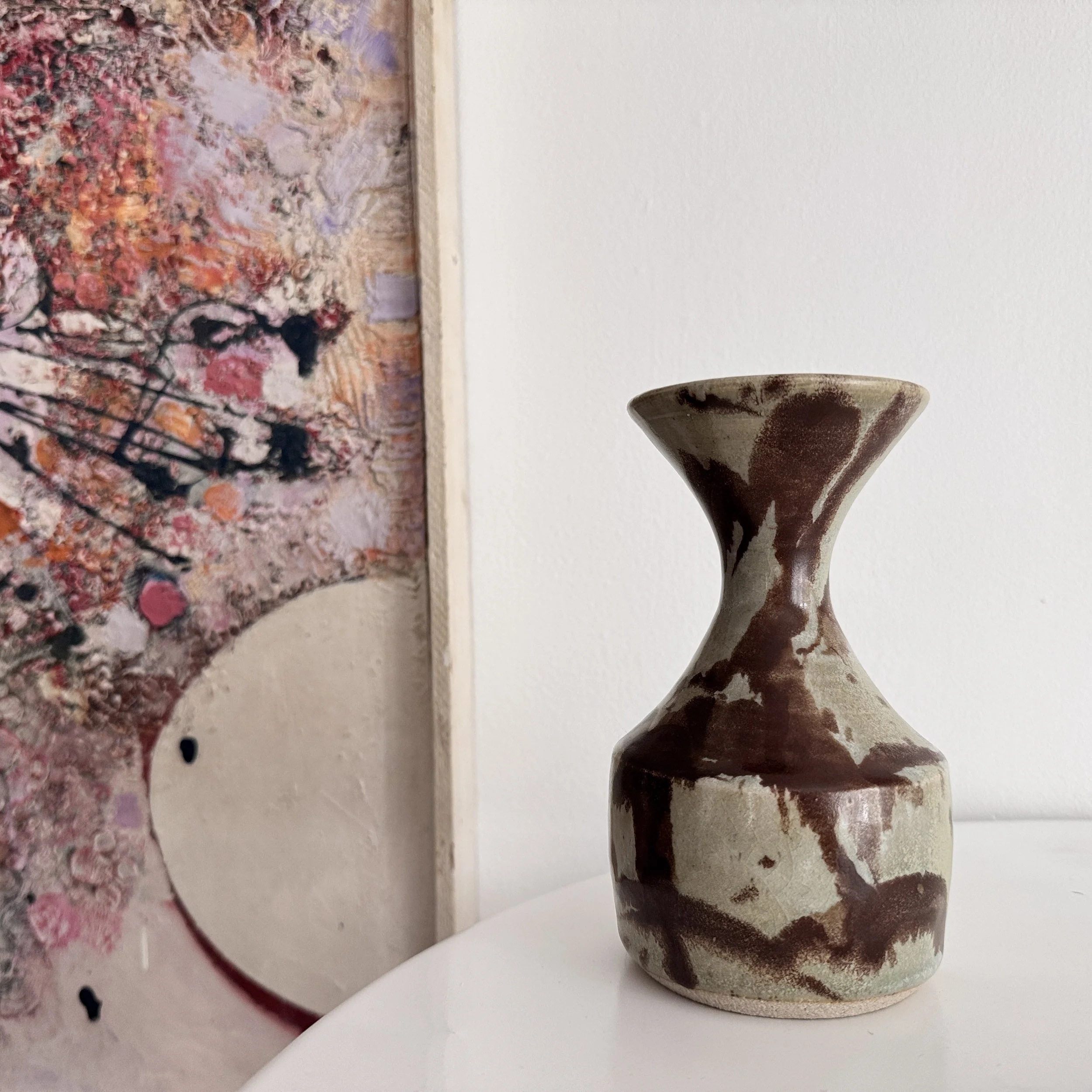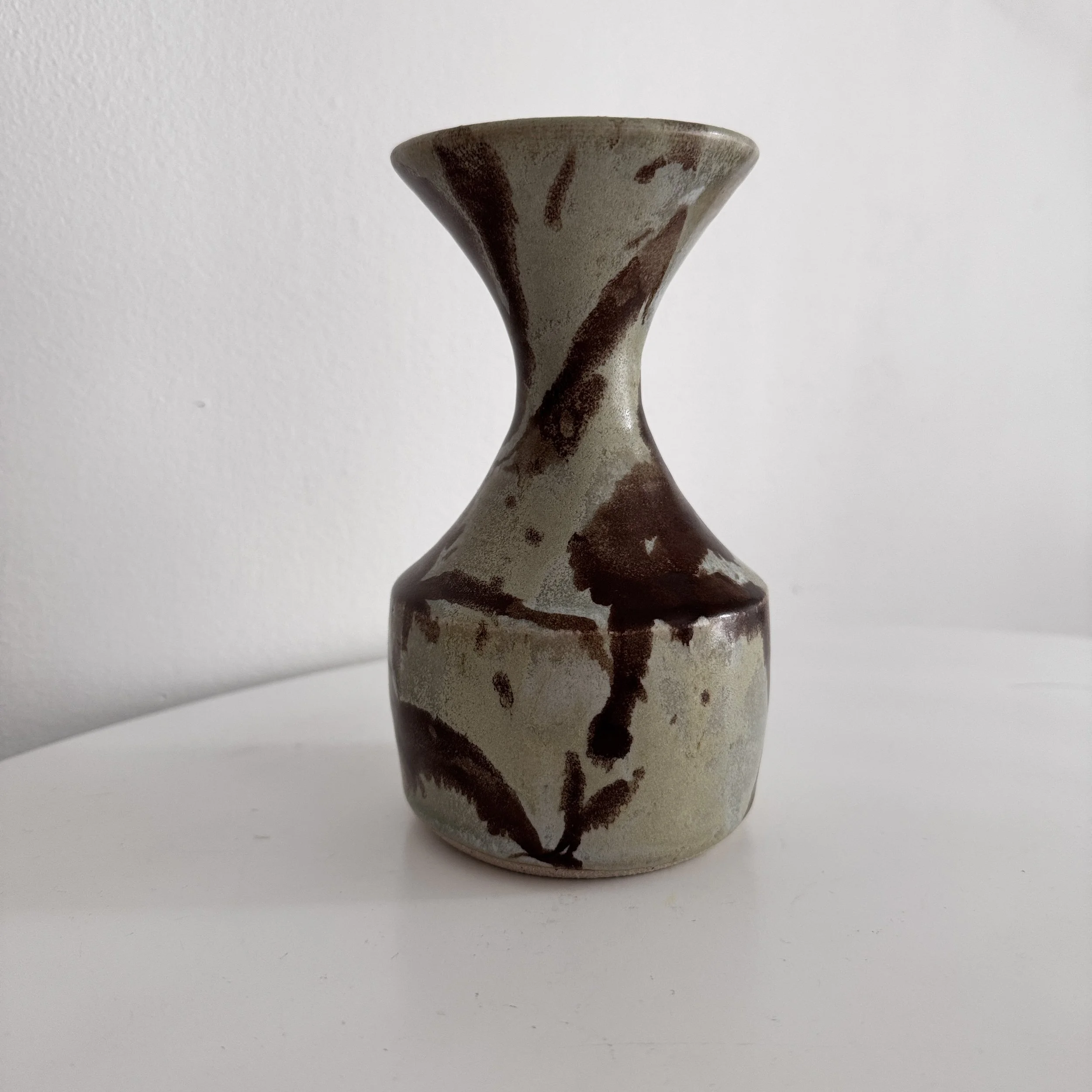 70s Studio pottery vase with an expressive hand painted abstract design.